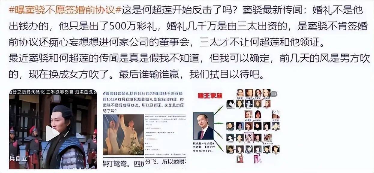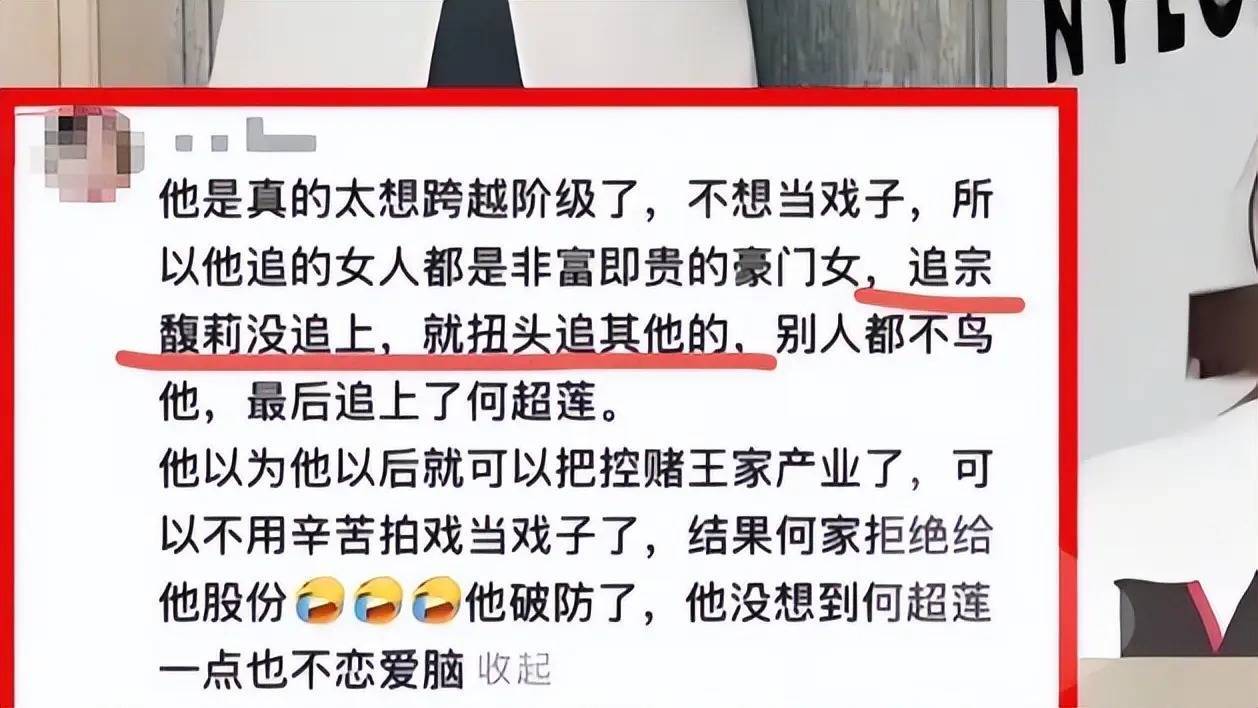 传言越说越离谱。有人说他结婚不肯签婚前协议,还想进女方家公司董事会,被网友嘲笑是“飞升失败”。他的“黑历史”也被翻出来,一会儿说他靠前女友资源出道,一会儿又扯上其他豪门千金,说得有鼻子有眼。