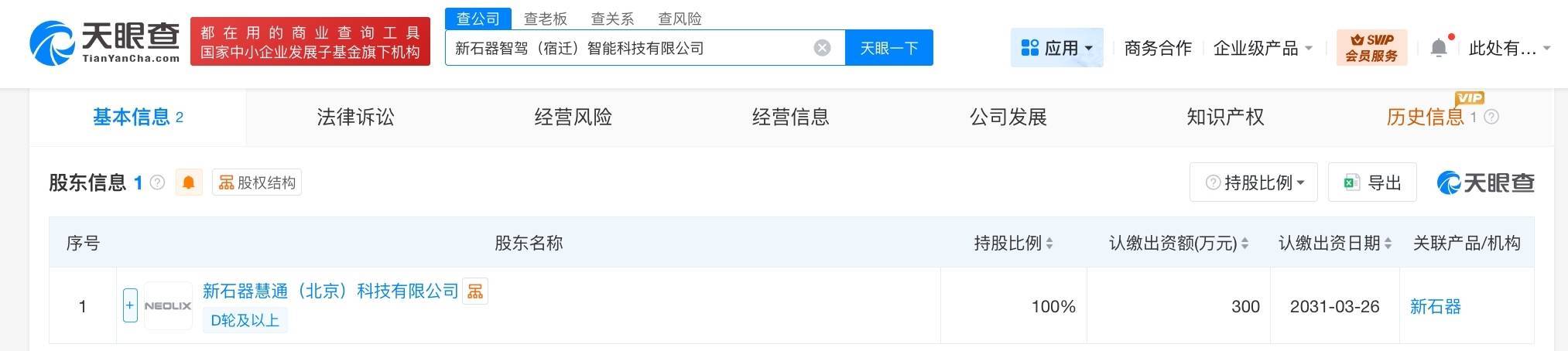 垒富配资 新石器在宿迁成立智驾智能科技公司