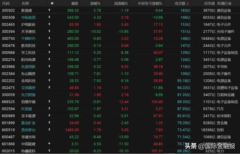 银行、券商、饮料板块护盘,科技股、资源股均熄火,光通信模块、电子设备制造、电子器件、金属、光电子器件等板块均大跌。